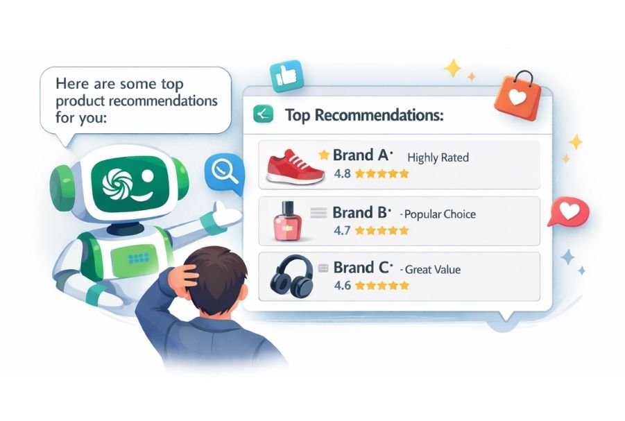 How to track it: AI tools like Perplexity and some Bing AI features do pass referral traffic. Tag these sessions in GA4 with UTM parameters where possible. Beyond direct referrals, use post-purchase surveys asking "How did you first hear about us?" — you'll find an increasing number of customers citing an AI recommendation.